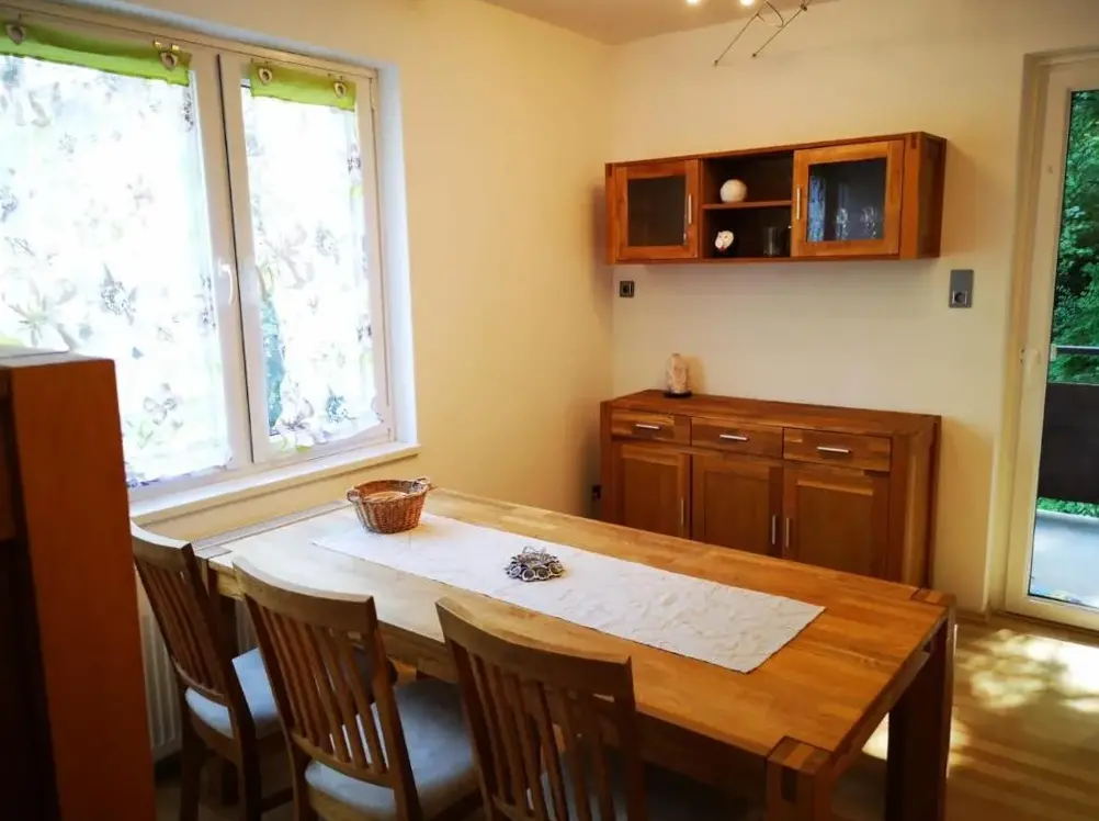 Jest to przyjazny, przytulny i wygodny apartament wyposażony w wszystko, czego możesz potrzebować w kuchni, a nawet pralce. Położony jest obok małego plamy lasu, dzięki czemu możesz cieszyć się poranną kawą na balkonie w towarzystwie wiewiórek i ptaków. Niektóre pokoje i balkony mają częściowe widoki na okoliczne góry i piękną dolinę.